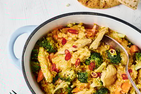 Inspiration til at spise grønt og godt med kylling Når du laver mad, kan du gøre en stor forskel for klimaet ved at spise mere plantebaseret og vælge lyst kød frem for rødt kød. Læs nu