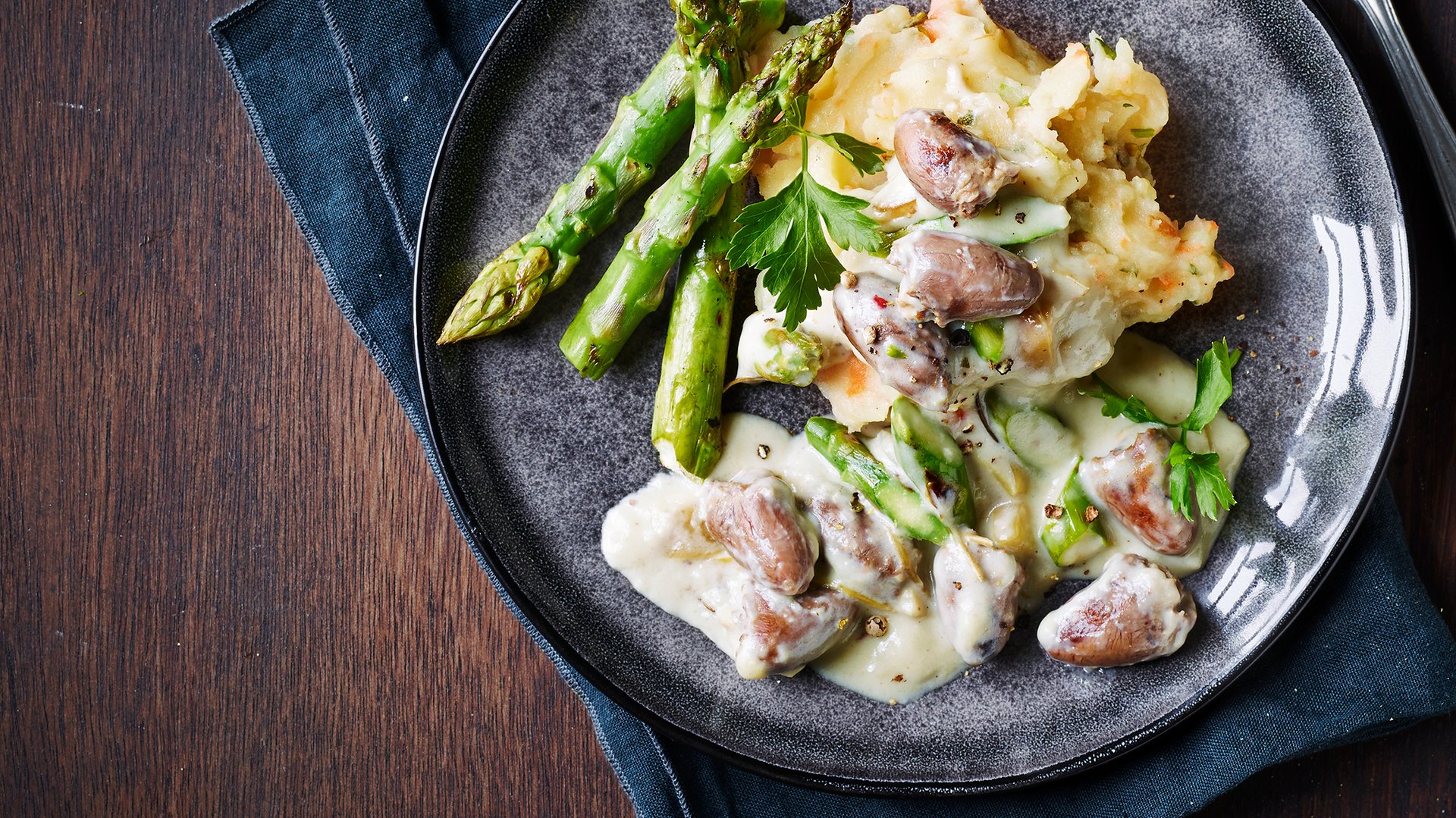 Kyllingehjerter i flødesovs